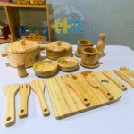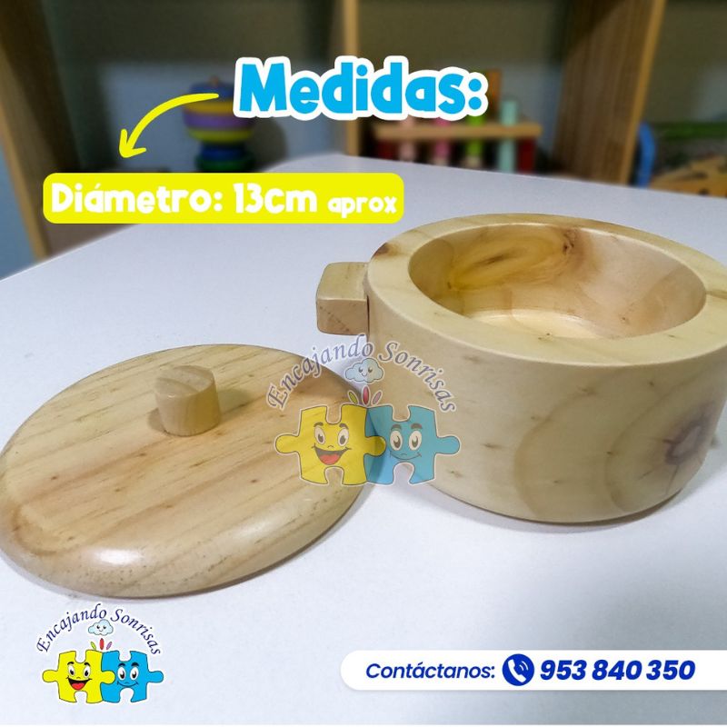 • Al ser de madera, las ollitas ofrecen diferentes texturas, temperaturas y pesos, lo que enriquece la experiencia sensorial en contraste con el plástico. Además, transmiten calidez y conexión con la naturaleza.