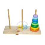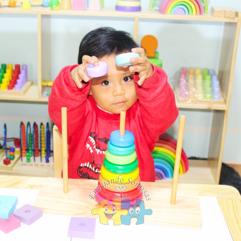 La Torre de Hanoi es un juego clásico de resolución de problemas que se adapta perfectamente a los principios de la educación Montessori, proporcionando a los niños una experiencia enriquecedora que desarrolla habilidades cognitivas, motoras y emocionales. En este juego, el objetivo es mover discos de diferentes tamaños de un poste a otro, siguiendo ciertas reglas. Aunque el concepto básico es simple, el desafío radica en encontrar la manera correcta de mover los discos sin violar las reglas, lo que lo convierte en una excelente herramienta educativa